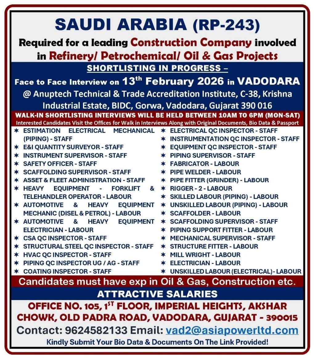 CIVIL ENGINEERING JOBS SAUDI ARABIA. FOR A Leading Building Construction to Requires For their Tower ProjectSHORTLISTING IN PROGRESS.