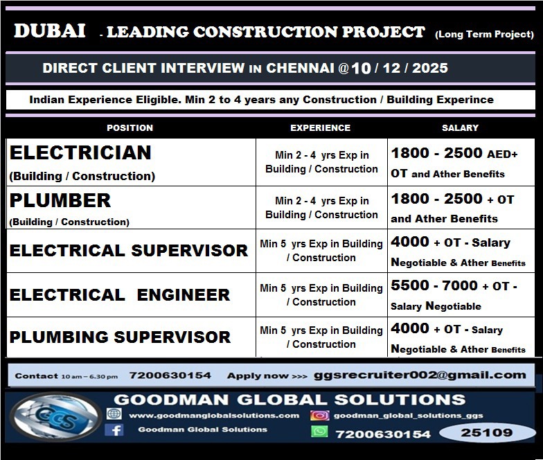 Home – DUBAI – LEADING CONSTRUCTION PROJECT – DIRECT CLIENT INTERVIEW IN CHENNAI @ 10 /12/2025