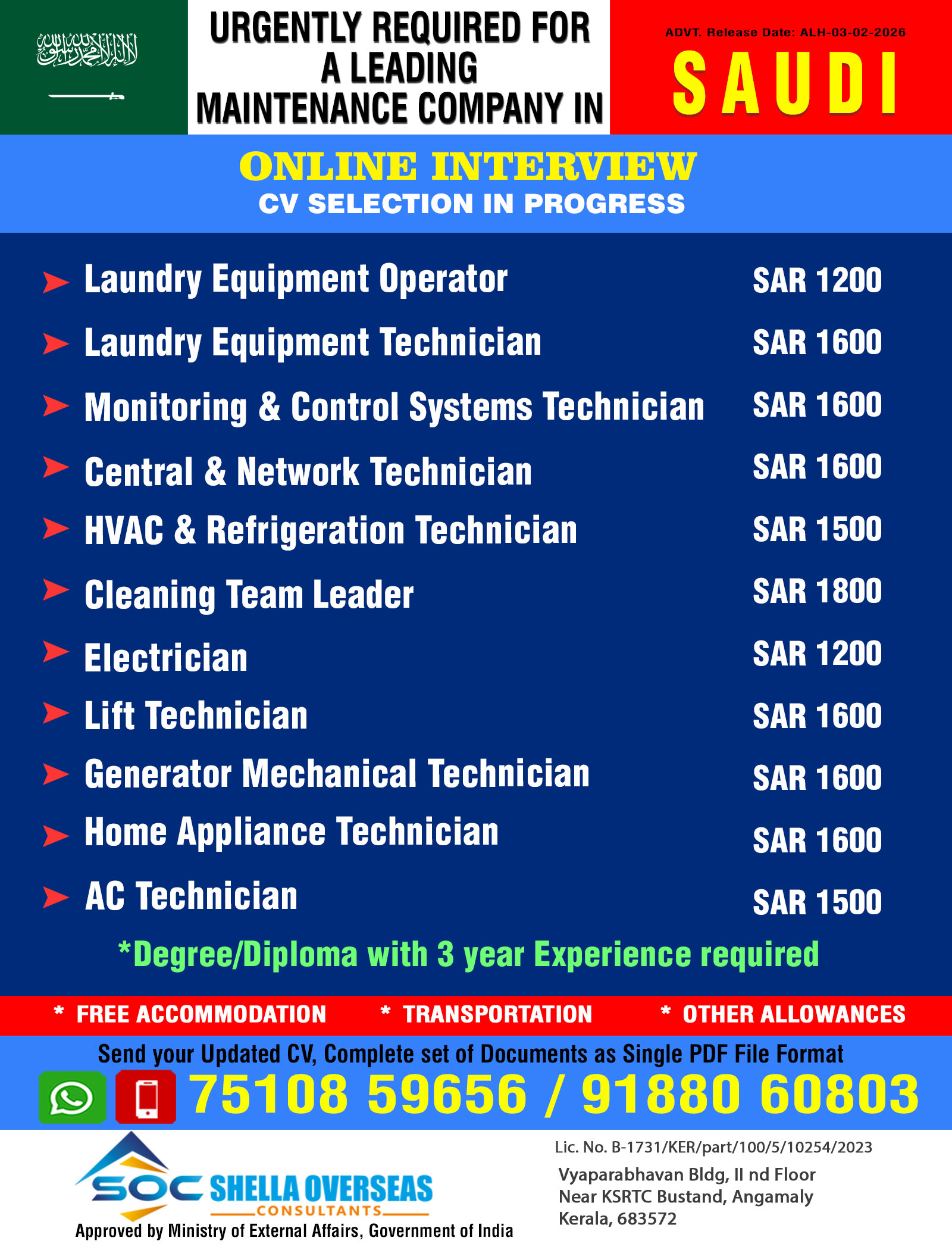 URGENTLY REQUIRED FOR FACILITY MANAGEMENT CO. KSA