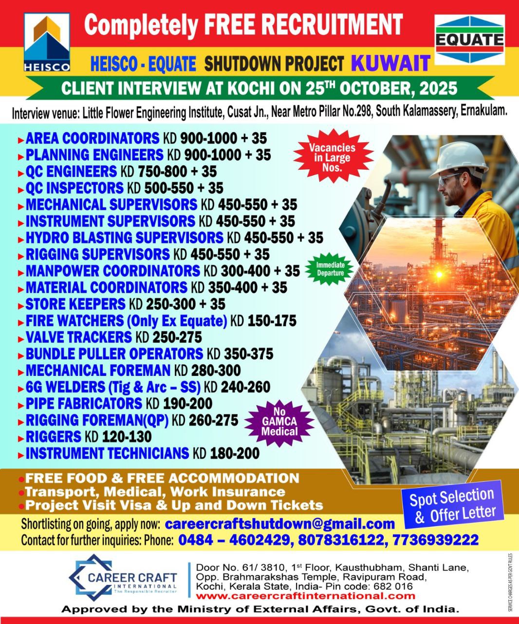 Home – Client Interview at Kochi on 14th October, 2025 for HEISCO – EQUATE SHUTDOWN –