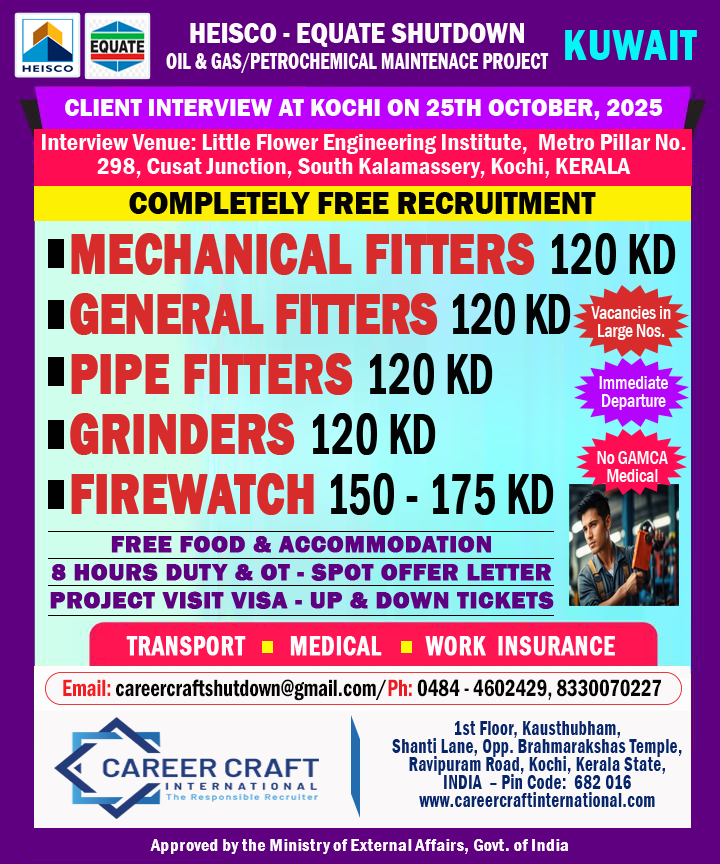 Home – Client Interview at Kochi on 25th October, 2025 for HEISCO – EQUATE SHUTDOWN –