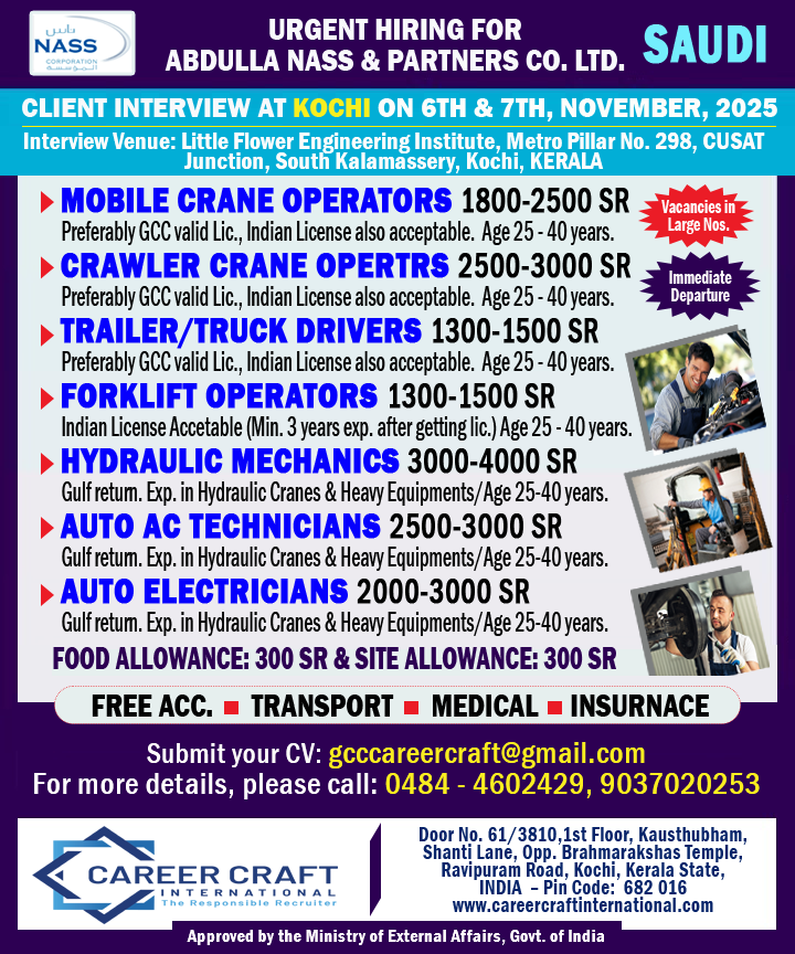 Home – CLIENT INTERVIEW AT KOCHI ON 6TH AND 7TH NOVEMBER, 2025 FOR ABDULLA NASS GROUP, SAUDI –