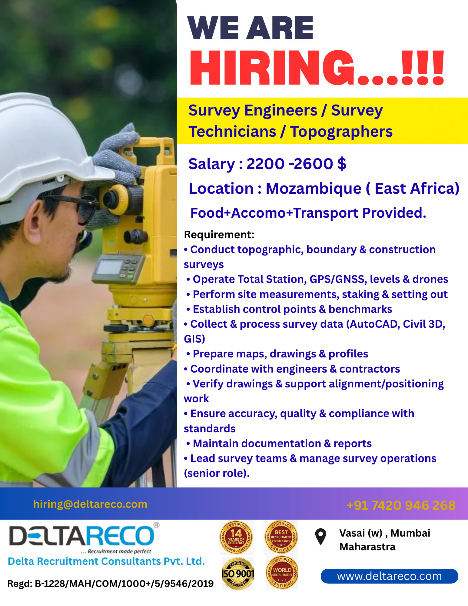 Position : Survey Engineers / Survey Technicians / Topographers