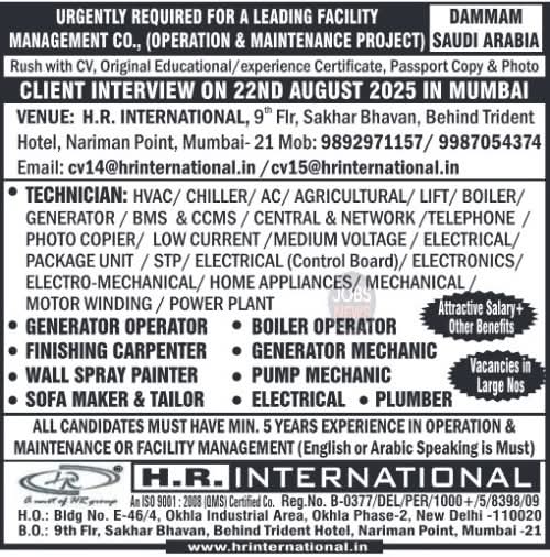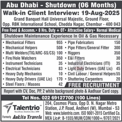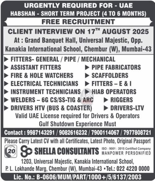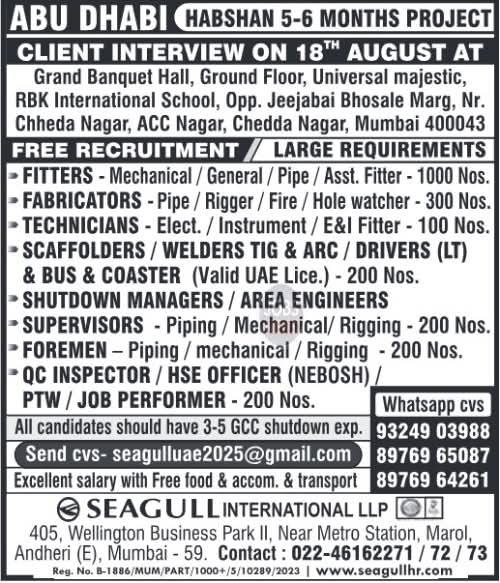 Here’s what I found regarding Gulf job interviews happening today, August 17, 2025, across Mumbai, Chennai, Kolkata, and Delhi: