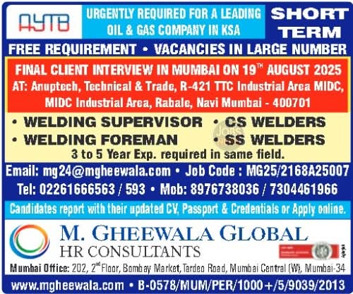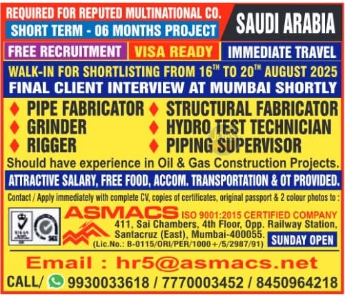 • There is a scheduled direct client interview for Saudi Arabia roles in Chennai on August 23, 2025, and another for Kuwait roles on August 24, 2025. These are upcoming, not today.