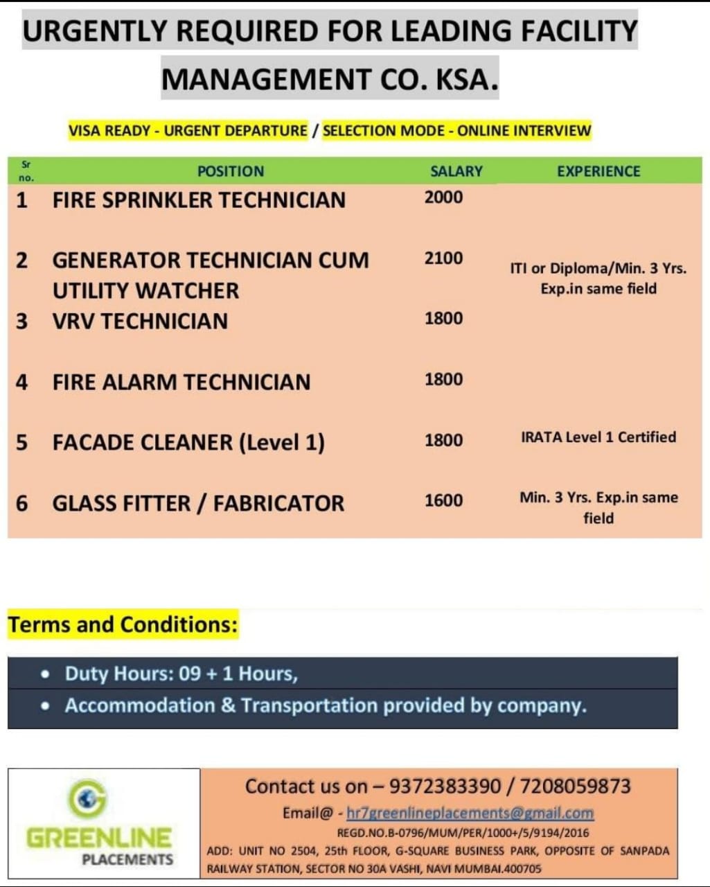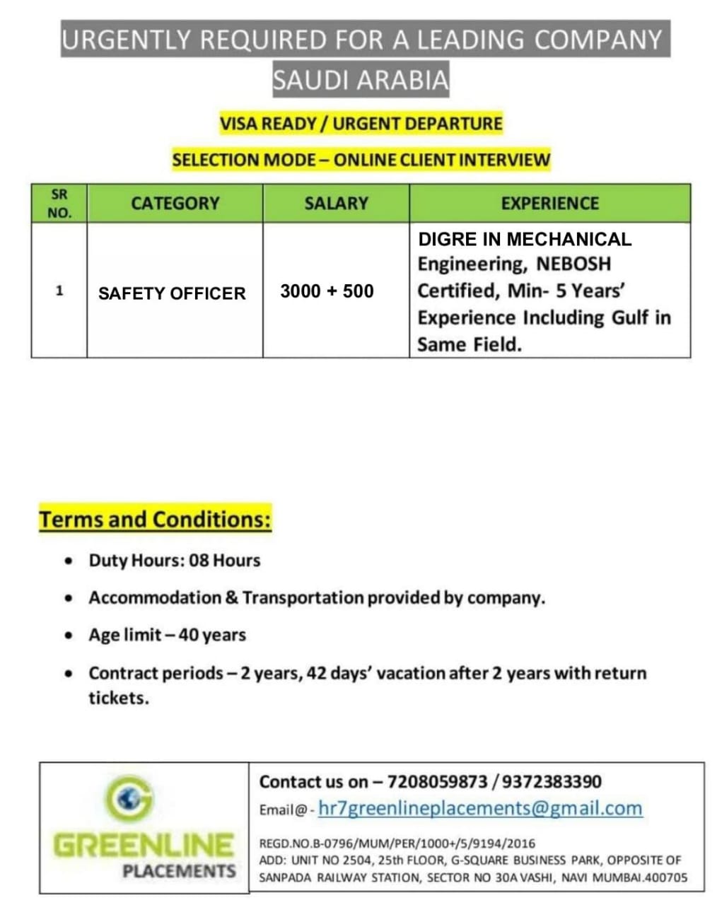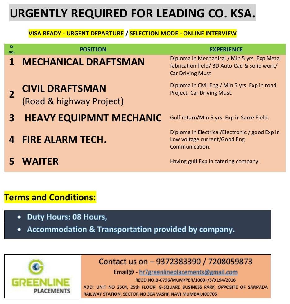 URGENTLY REQUIRED FOR REPUTED CO. KSA
