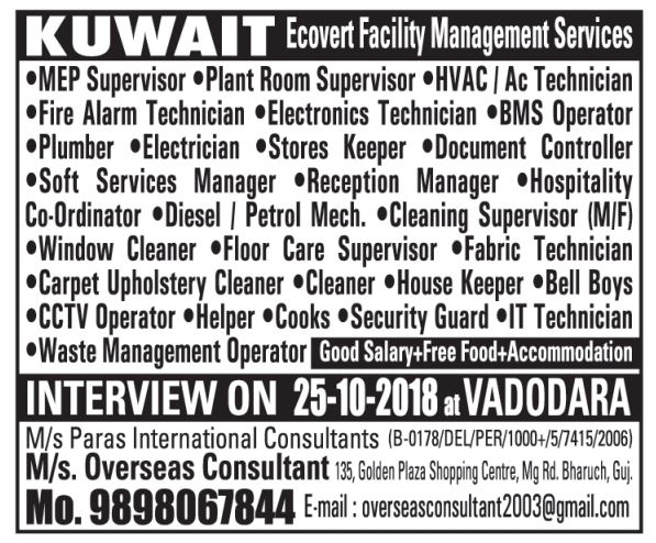 – INTERVIEW ON 25-10-2018 at VADODARA