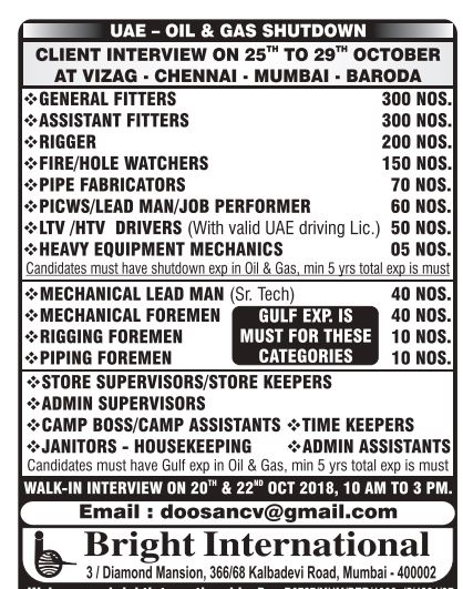 – Candidates must have shutdown exp in Oil & Gas,min 5 yrs total exp is must