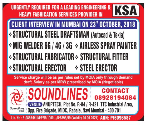 – CLIENT INTERVIEW IN MUMBAI ON 23rd OCTOBER, 2018 At ANUPTECH, Plot No. R-84 / R-421, TIC Industrial Area,Opp. Fire Brigade, MIDC, Rabale, Navi Mumbai – 400701